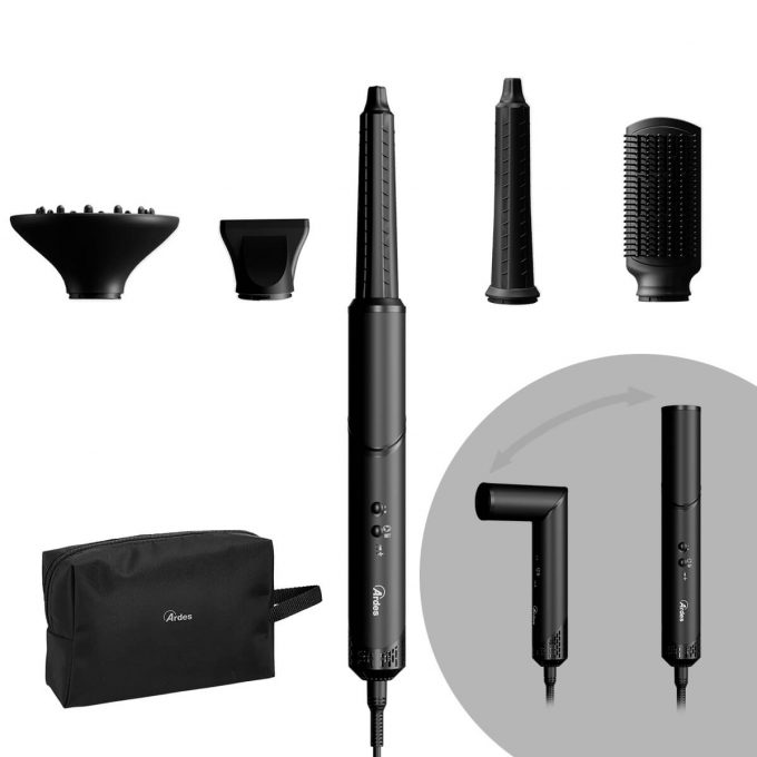Il set offre 5 accessori intercambiabili per soddisfare ogni esigenza: due arricciacapelli autoavvolgenti per creare splendide onde e boccoli, una spazzola per lisciare e disciplinare i capelli crespi, un diffusore per definire i ricci e un concentratore per realizzare una piega perfetta.