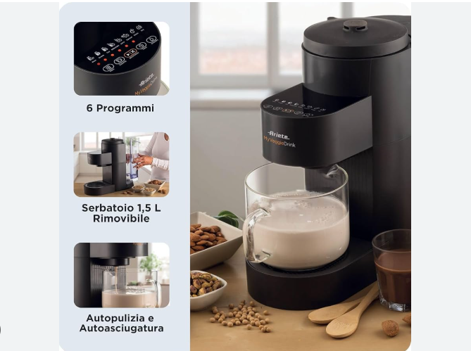 - Abbraccia i tuoi gusti: puoi scegliere tante varianti di bevanda vegetale utilizzando mandorle, nocciole, avena, riso, quinoa e aggiungere aromi naturali come vaniglia, cannella e cacao.